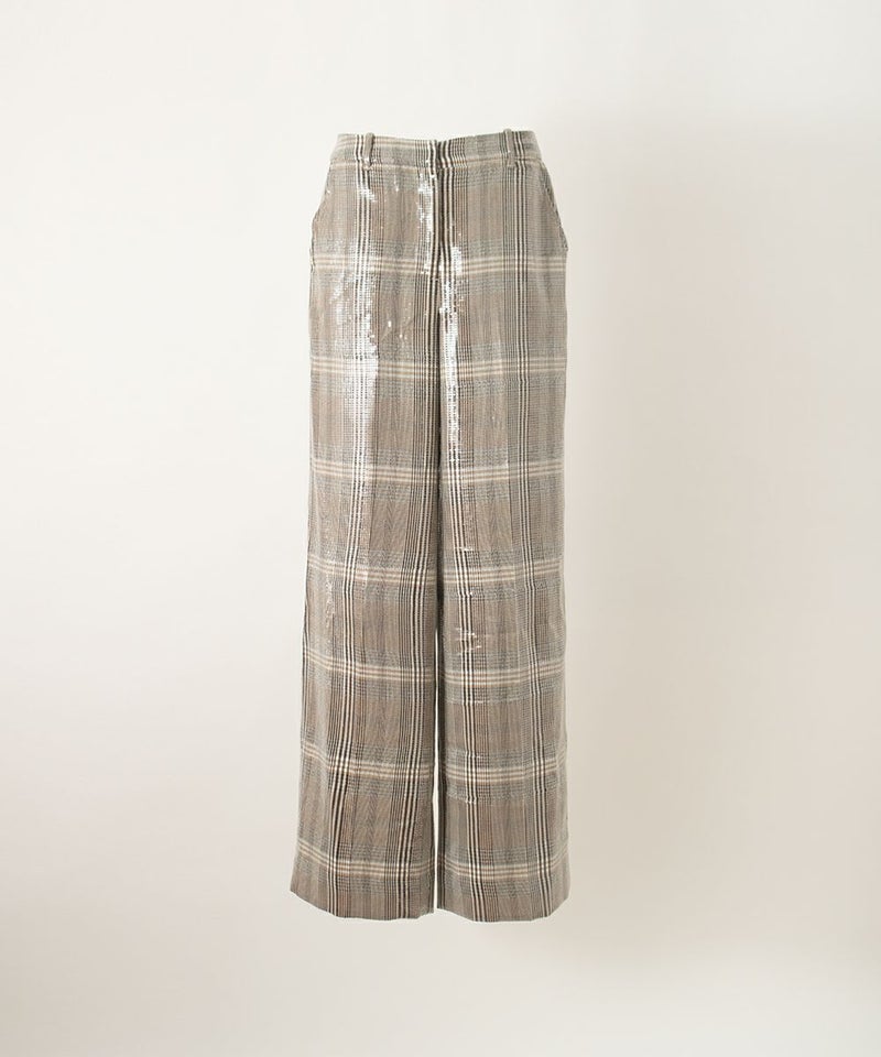 SEQUIN PLAID FLAT FRONT WIDE LEG PANT パンツ
