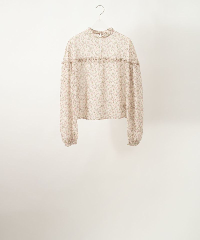 Flowered silk blouse with ruffles detail ブラウス