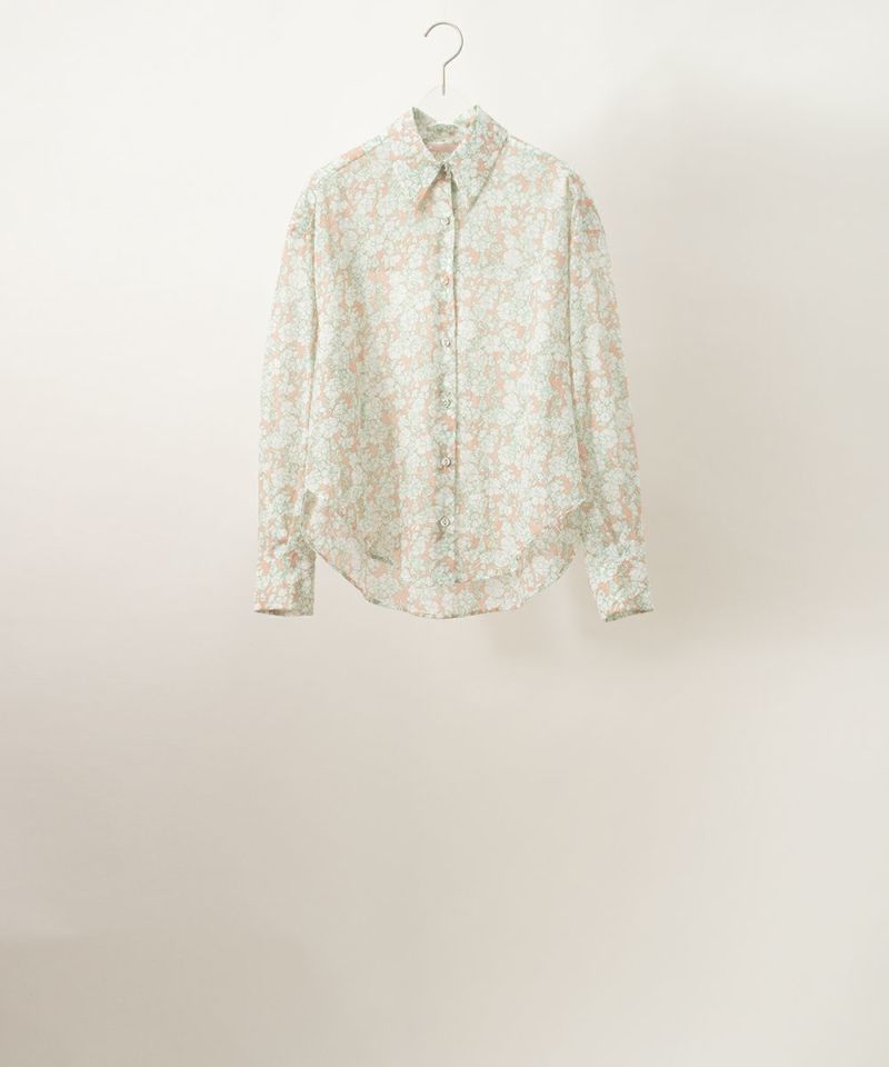 White flowers cotton man shirt ブラウス