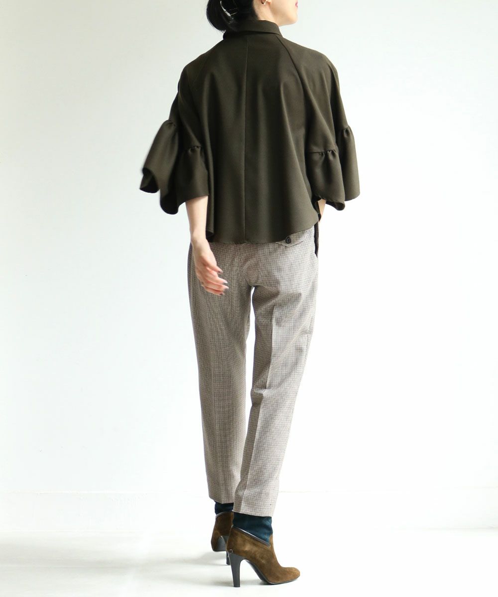 コレクションのほとんどは立体裁断から行い、デザインをしています。袖を通すことで品質の良さを感じられ、衣服を着た女性の表情や立ち居、振る舞いをより美しく見せる衣服をつくりだし、コンプレックスをチャームポイントにしてくれる。教えたいけど、秘密にしたい。そんなアイテムたちが揃う。