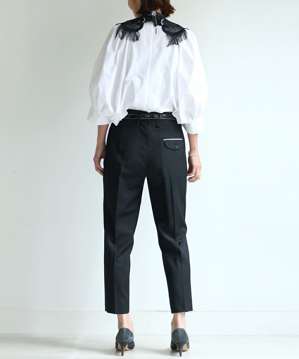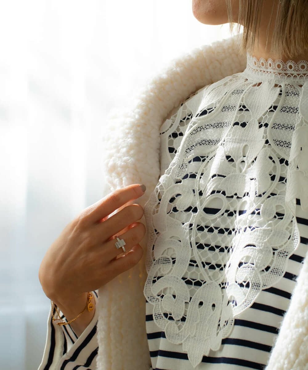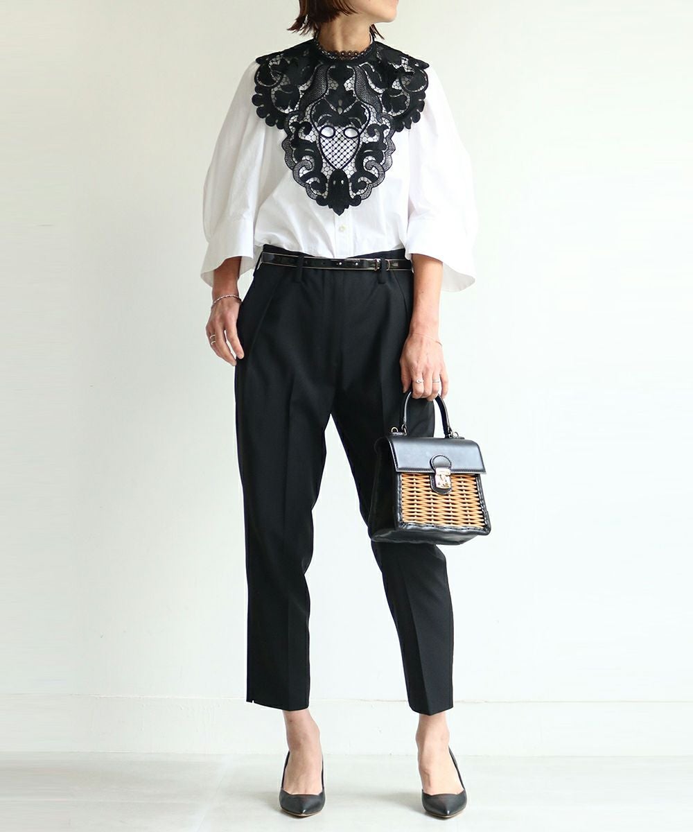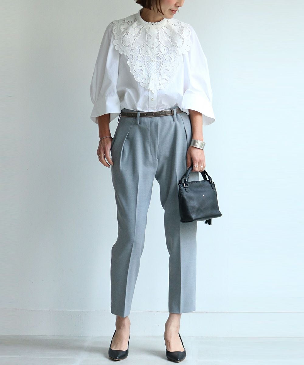 コレクションのほとんどは立体裁断から行い、デザインをしています。袖を通すことで品質の良さを感じられ、衣服を着た女性の表情や立ち居、振る舞いをより美しく見せる衣服をつくりだし、コンプレックスをチャームポイントにしてくれる。教えたいけど、秘密にしたい。そんなアイテムたちが揃う。