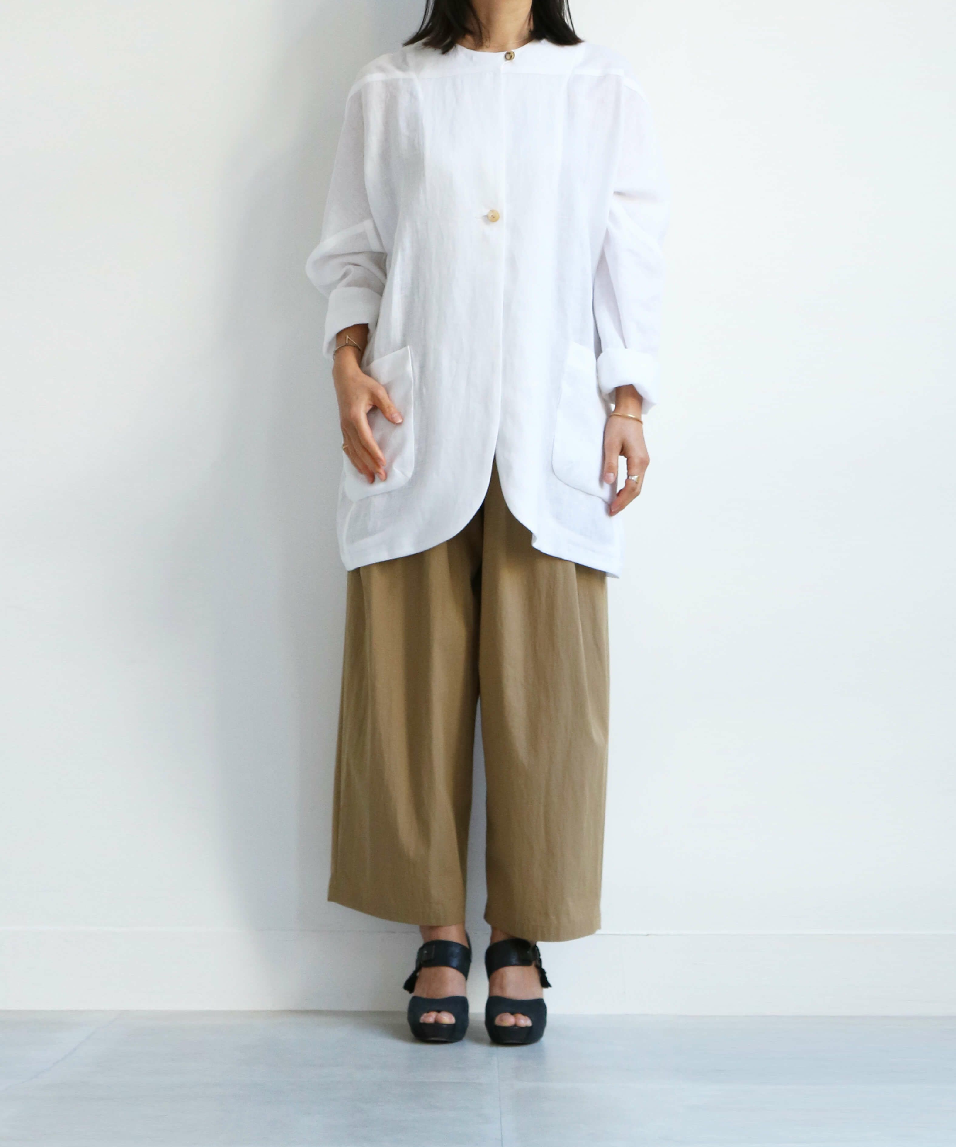 コレクションのほとんどは立体裁断から行い、デザインをしています。袖を通すことで品質の良さを感じられ、衣服を着た女性の表情や立ち居、振る舞いをより美しく見せる衣服をつくりだし、コンプレックスをチャームポイントにしてくれる。教えたいけど、秘密にしたい。そんなアイテムたちが揃う。