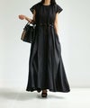 ネックラインからのギャザーフレアをウエストラインの穴に紐を通すことにより、均等なひだを作り立体的な分量感のドレスに仕上がっています。 また穴に紐を通すことで、カーテンのような綺麗なドレープ感が上から下まで続いているのが特徴です。 見頃には大きく分量が取られていてベルトで調整できるので、体型を選ばないドレスに仕上がっています。 *その他ラインナップはSUPPORT SURFACEギャラリーページでもご覧いただけます。 SUPPORT SURFACEのブログ はこちらから。