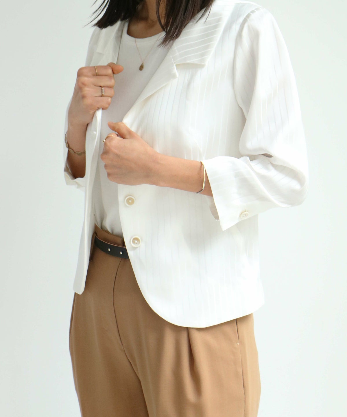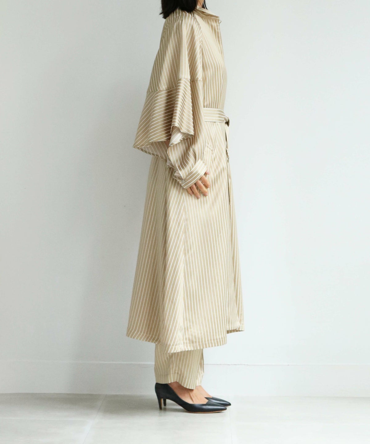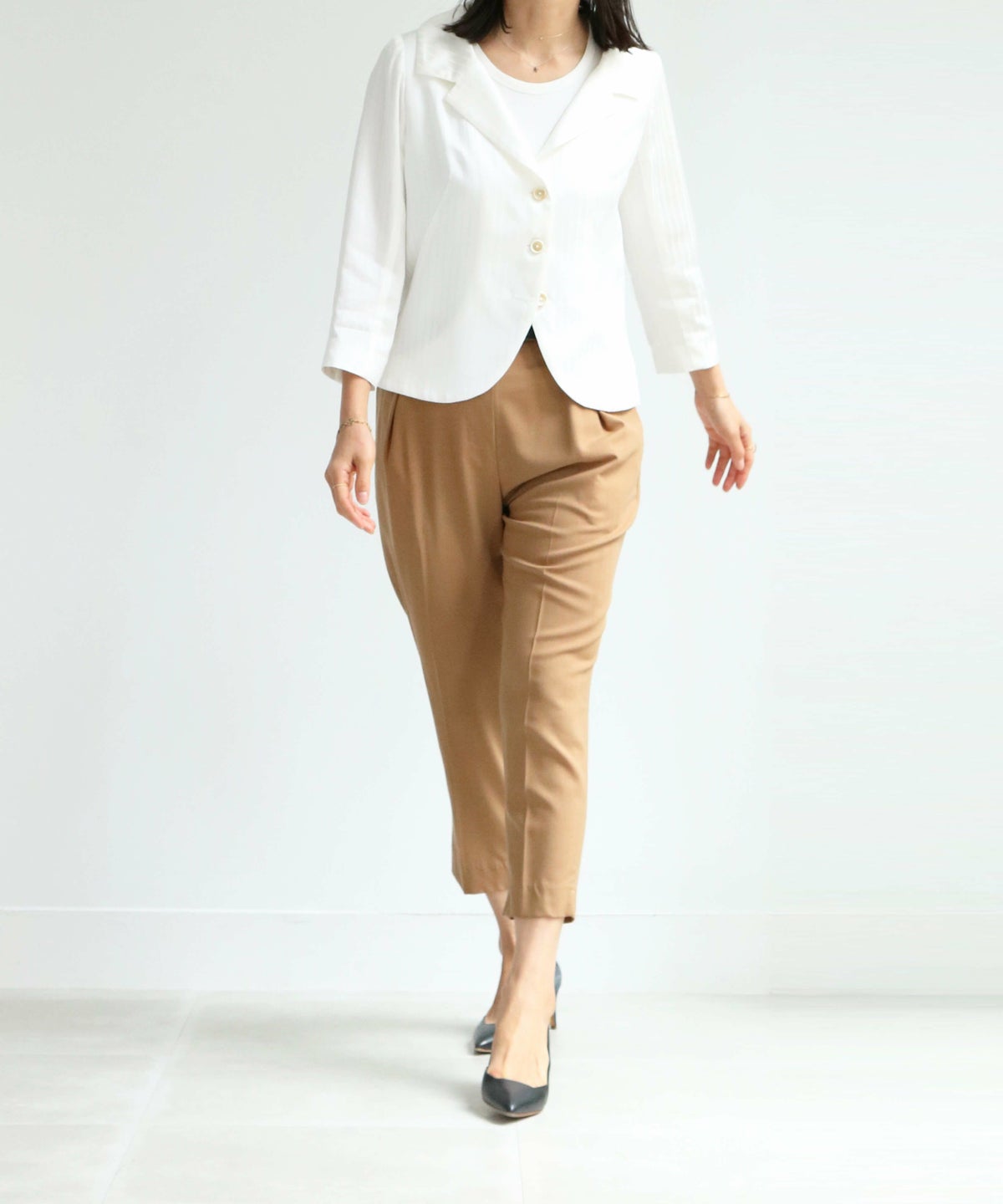 コレクションのほとんどは立体裁断から行い、デザインをしています。袖を通すことで品質の良さを感じられ、衣服を着た女性の表情や立ち居、振る舞いをより美しく見せる衣服をつくりだし、コンプレックスをチャームポイントにしてくれる。教えたいけど、秘密にしたい。そんなアイテムたちが揃う。