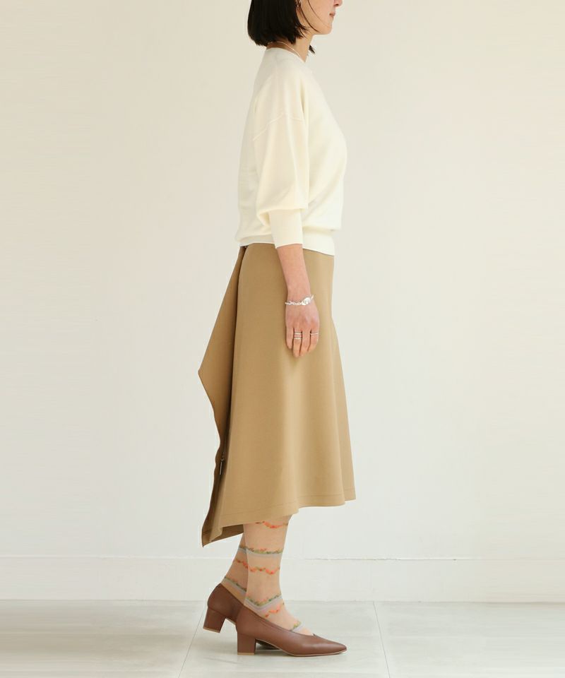 コレクションのほとんどは立体裁断から行い、デザインをしています。袖を通すことで品質の良さを感じられ、衣服を着た女性の表情や立ち居、振る舞いをより美しく見せる衣服をつくりだし、コンプレックスをチャームポイントにしてくれる。教えたいけど、秘密にしたい。そんなアイテムたちが揃う。