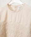 肌触りのいいコットンブロード生地を使用したブラウスは、 刺繍部分と無地部分のコントラストが個性的です。 後ろ身頃の着丈が少し長めになっています。 製品染を行っているため、独特のくしゃっと感が生まれ、 刺繍のお花が浮き上がって見えるような立体感が出ます。