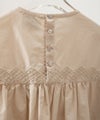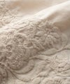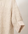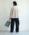 肌触りのいいコットンブロード生地を使用したブラウスは、 刺繍部分と無地部分のコントラストが個性的です。 後ろ身頃の着丈が少し長めになっています。 製品染を行っているため、独特のくしゃっと感が生まれ、 刺繍のお花が浮き上がって見えるような立体感が出ます。