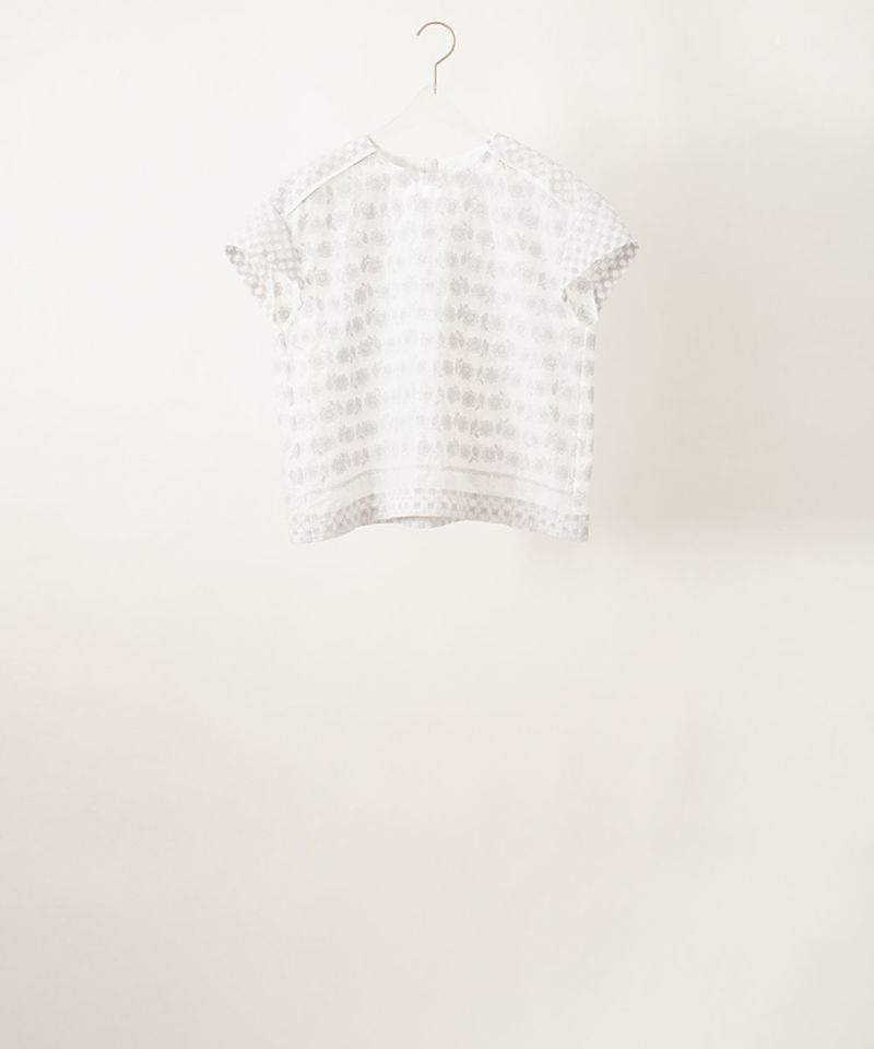 どこか懐かしい雰囲気の花柄の刺繍生地と、小さな花をジオメトリックに配置した刺繍生地を組み合わせたデザインです。