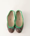 マドリガルの別注カラーになります。 レザーのBROWNにグリーンのパンピング。 インソールにはsoutiencollarとporselliのロゴが刻印されています。
