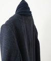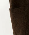 潔いフォルムにストールが一体になったようなデザインのコート。複数の色が混ざって深みのある茶色はドライフルーツの入ったブラウニーを思わせます。ふんわりと弾力のある起毛ツイード生地は軽くて暖かく、さらに襟元のストールは同色のカシミヤニットで、幸せな心地の柔らかさと暖かさ倍増です。 着物のような前合わせで、スナップボタンで留めます。