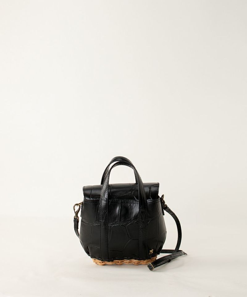 【素材】 ソフトに鞣した牛革にワニの型押しを施してあります。 表面はしっかり型押しされているのに柔らかな素材感で手に馴染みます。 底部分に使われている籐(とう)は、「紅籐(べにとう)」と呼ばれ、24時間水につけて柔らかくするほど硬く丈夫な素材です。 使うほどに色と艶が変化していきます。 籐は自然の素材なので黒いところ赤いところと様々な表情がございます。 一つ一つ職人による手仕事で作られているため個体差がございます。 【収納】 二つ折り財布:〇 ポーチ:〇 スマ-トフォン:〇