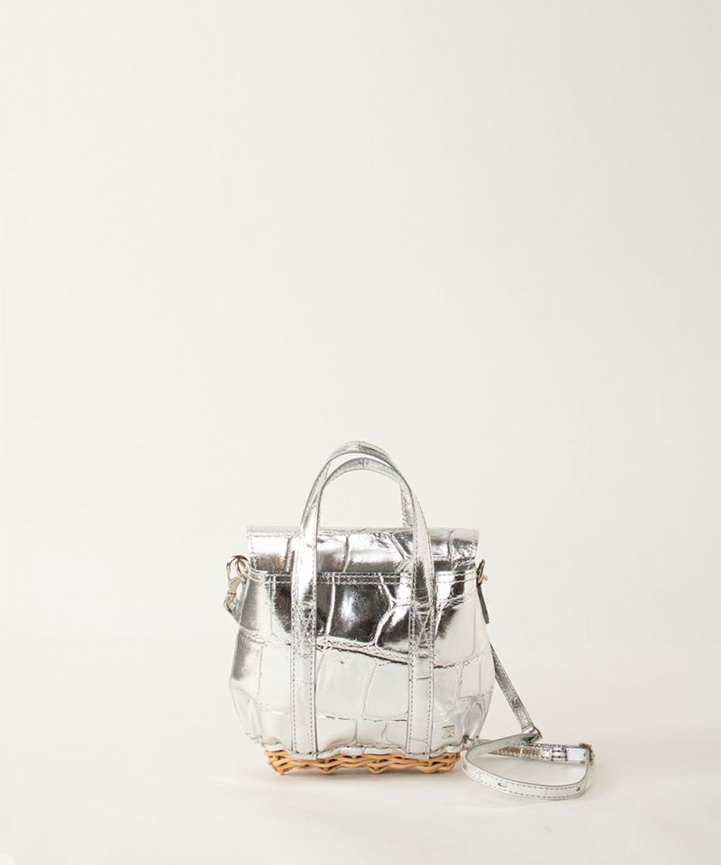 【素材】 ソフトに鞣した牛革に箔加工をし、ワニの型押しを施してあります。 表面はしっかり型押しされているのに柔らかな素材感で手に馴染みます。 底部分に使われている籐(とう)は、「紅籐(べにとう)」と呼ばれ、24時間水につけて柔らかくするほど硬く丈夫な素材です。 使うほどに色と艶が変化していきます。 籐は自然の素材なので黒いところ赤いところと様々な表情がございます。 一つ一つ職人による手仕事で作られているため個体差がございます。 【収納】 二つ折り財布:〇 ポーチ:〇 スマ-トフォン:〇