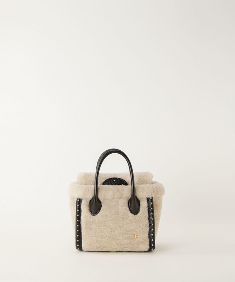 穴の下からもこもこボアをのぞかせた小さなキューブ型のトートバッグです。 【素材】 渋なめしの特徴が強い革です。独特の光沢があり、使用していると艶がでてきます。 本来の質感を大切にしているので使用していると細かい傷がつきますが、ずっと愛用していただくと傷も馴染んでくる革です。 ウールボアのNATURALは化学染料を使用せず、ナチュラルカラーの羊毛になります。 裏地には、明るいカラーのナイロン素材を合わせ、軽く汚れにも強くなっています。 【収納】 ミニ財布:〇 リップスティック:〇 スマ-トフォン:〇 【ご購入に関して】 エバゴスの販売実店舗はマドリガル 北店、南堀江店、ムジークの3店舗ございます。 ご希望の商品の在庫の有無はご来店希望の店舗メールにお気軽にお問い合わせくださいませ。