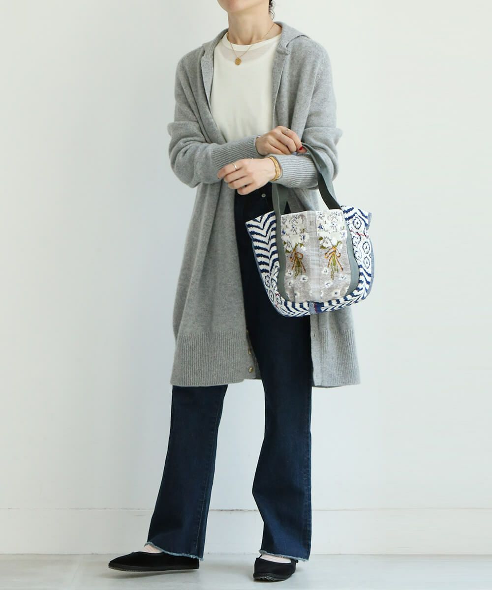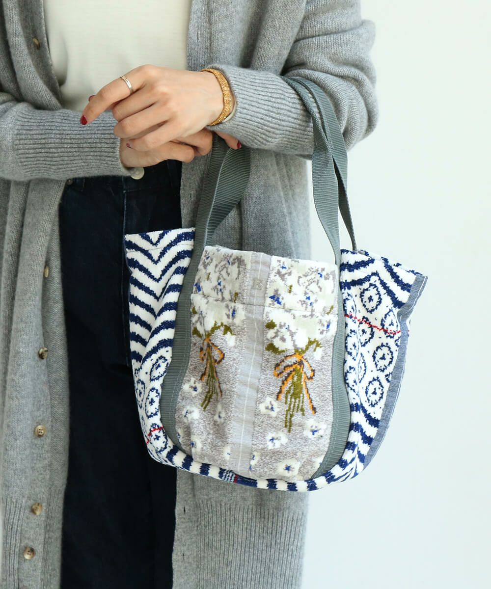 エバゴスで17年作り続けられているシェニール織り。 時代が移り変わる中もずっと丁寧に珍しい柄を工場では四苦八苦しながら作られています。 「ステナイネ」の精神を大切に、これからも大切に作られていく。 そんなシェニールのアーカイブバッグ。 時代の違う柄同士の組み合わせをお愉しみください。 【素材】 シェニールは再織りと呼ばれています。 一度織ったものをカットして糸を作り、織りなおし、時間をかけて作り出した織物です。 ※シェニール織の柄の出方、バッグ裏地のデザインは一点づつ異なります。(商品写真は一例となるため、実際にお届けする商品とは異なる場合がございます。予めご了承くださいませ。) 【収納】 長財布:〇 ポーチ:〇 スマ-トフォン:〇 ペットボトル(500ml):〇