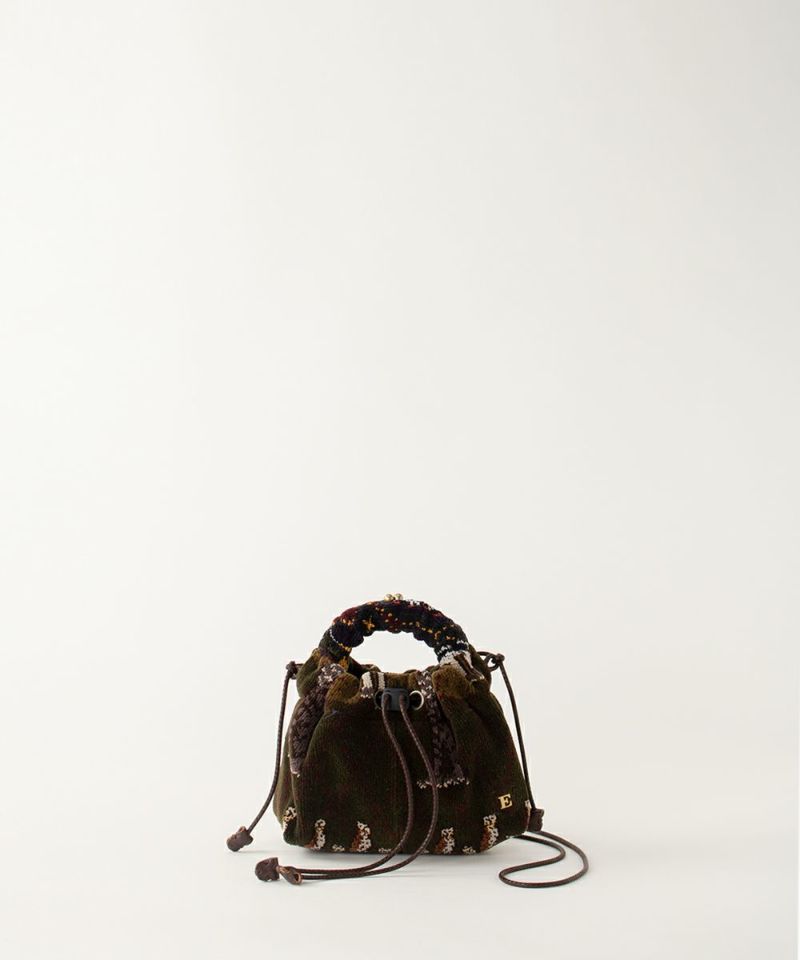 エバゴスで17年作り続けられているシェニール織り。 時代が移り変わる中もずっと丁寧に珍しい柄を工場では四苦八苦しながら作られています。 「ステナイネ」の精神を大切に、これからも大切に作られていく。 そんなシェニールのアーカイブバッグ。 時代の違う柄同士の組み合わせをお愉しみください。 ついつい、丸い玉をひねってあけたくなるけれど、あれ?あかない?ってなっちゃうクチガネ?ジャナイ・ポシェット。 【素材】 シェニールは再織りと呼ばれています。 一度織ったものをカットして糸を作り、織りなおし、時間をかけて作り出した織物です。 【収納】 ミニ財布:〇 スマ-トフォン:〇