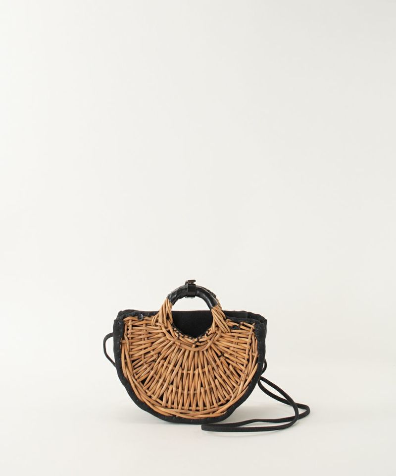 丸みのあるシルエットが可愛い「半月バッグ」 オールシーズン使える人気の形がミニサイズになりました。 コンパクトでありながら、マチがあるので見た目以上の収納力。 ちょっとしたお出掛けに大活躍。 キャンバス素材部分は折りたたむことも出来るので、旅行先につれていくのもおすすめです。 ショルダー部分の紐はお好みの長さに調整していただけます。 【素材】 カゴ本体に使われている籐(とう)は、「紅籐(べにとう)」と呼ばれ、24時間水につけて柔らかくするほど硬く丈夫な素材です。 使うほどに色と艶が変化していきます。 籐は自然の素材なので黒いところ赤いところと様々な表情がございます。一つ一つ職人による手仕事で作られているため個体差がございます。 【収納】 三つ折り財布:〇 スマ-トフォン:〇 【ご購入に関して】 エバゴスの販売実店舗はマドリガル 北店、南堀江店、ムジークの3店舗ございます。 ご希望の商品の在庫の有無はご来店希望の店舗メールにお気軽にお問い合わせくださいませ。