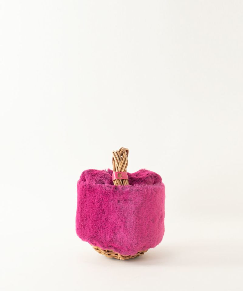カゴ皿にみつあみ手。 丸いドーナツ状のファーのカゴバッグ。 丸いファーのかぶせは取り外しも可能です。 他のカゴバッグに合わせてもお使いいただけます。 【素材】 本体に使われているエコファーは手触りの良さを追求し、糸の断面が扁平になっている糸を使用し、ブレンドして編まれているのでパイルの根元と毛先に色の変化があるので、立体的にみえるファーが使われています。 お手入れはブラッシングと埃を落とすように降っていただくと良いです。 持ち手部分に使われている籐(とう)は、「紅籐(べにとう)」と呼ばれ、24時間水につけて柔らかくするほど硬く丈夫な素材です。 使うほどに色と艶が変化していきます。 籐は自然の素材なので黒いところ赤いところと様々な表情がございます。一つ一つ職人による手仕事で作られているため個体差がございます。 【収納】 二つ折り財布:〇 ポーチ:〇 スマ-トフォン:〇