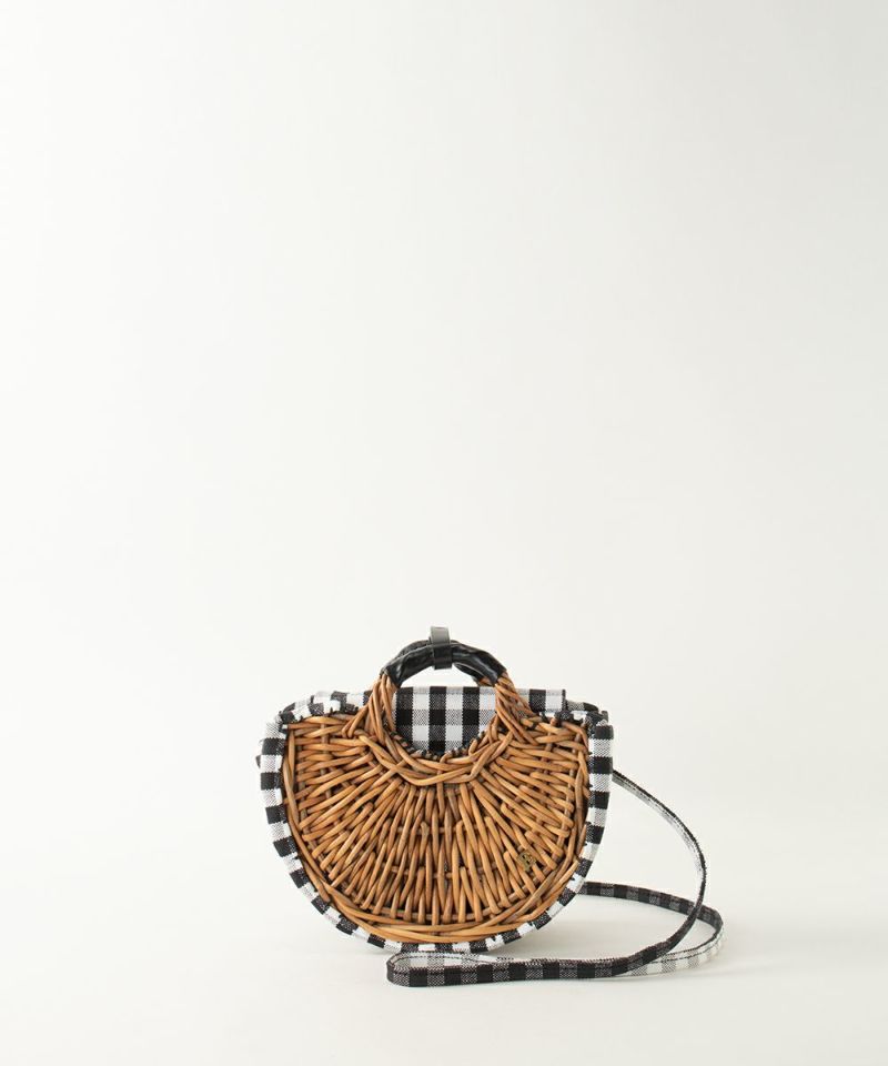 キャンバス・扇トート ミニ(半月かご ミニ)防水キャンバス×紅籐 GINGHAM