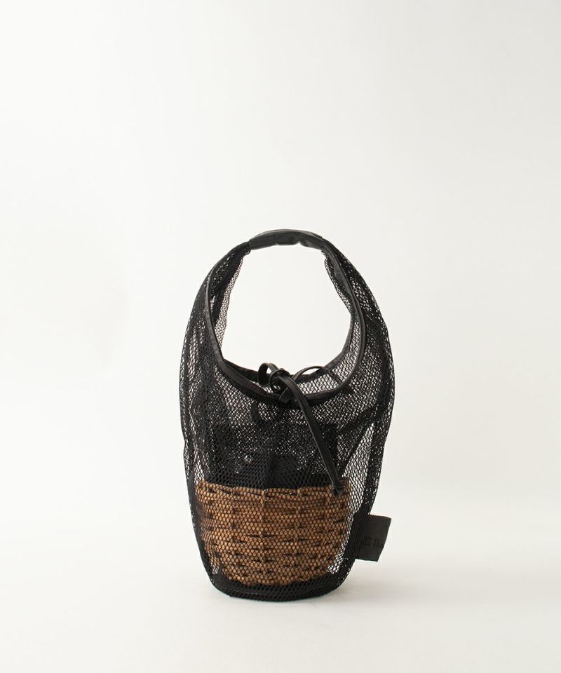 厚みの違う2種類のメッシュで表裏が作られており、カゴ部分は透け感が美しいですが、バッグの中身は透けすぎず、使うときの安心感もあります。 カゴがまるで網タイツをはいたような遊びゴコロのあるバッグです。 【素材】 メッシュは糸の太さの違うナイロンをデザインによって使い分けられてつくられています。 カゴ本体に使われている籐(とう)は、「紅籐(べにとう)」と呼ばれ、24時間水につけて柔らかくするほど硬く丈夫な素材です。 使うほどに色と艶が変化していきます。 籐は自然の素材なので黒いところ赤いところと様々な表情がございます。 一つ一つ職人による手仕事で作られているため個体差がございます。 (シーズンにより若干のデザインのチェンジ、バッグ内側の使用素材および配色の変更があることがございます。) *バッグ表面の籐の出方は個体差がございます。 【収納】 長財布:〇 スマ-トフォン:〇 ポーチ:〇
