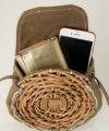 人気のキャンバス素材がカジュアルな装いにもあわせやすく ファッションのポイントになるサークルポシェットになりました。 ストラップは約140㎝あり、長さは結んで調節可能です。 【素材感】カゴ本体に使われている籐(とう)は、「紅籐(べにとう)」と呼ばれ、24時間水につけて柔らかくするほど硬く丈夫な素材です。 使うほどに色と艶が変化していきます。 籐は自然の素材なので黒いところ赤いところと様々な表情があり、一つ一つ職人による手仕事で作られているため個体差がございます。 【収納】 二つ折り財布::〇 スマ-トフォン:〇