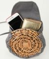 人気のキャンバス素材がカジュアルな装いにもあわせやすく ファッションのポイントになるサークルポシェットになりました。 ストラップは約140㎝あり、長さは結んで調節可能です。 【素材感】カゴ本体に使われている籐(とう)は、「紅籐(べにとう)」と呼ばれ、24時間水につけて柔らかくするほど硬く丈夫な素材です。 使うほどに色と艶が変化していきます。 籐は自然の素材なので黒いところ赤いところと様々な表情があり、一つ一つ職人による手仕事で作られているため個体差がございます。 【収納】 二つ折り財布::〇 スマ-トフォン:〇