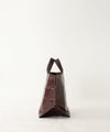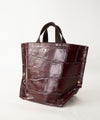 【素材】 ソフトに鞣した牛革にワニの型押しを施してあります。 表面はしっかり型押しされているのに柔らかな素材感で手に馴染みます。 【収納】 長財布:〇 ポーチ:〇 スマ-トフォン:〇 ペットボトル(500ml):〇 A4ファイル:〇