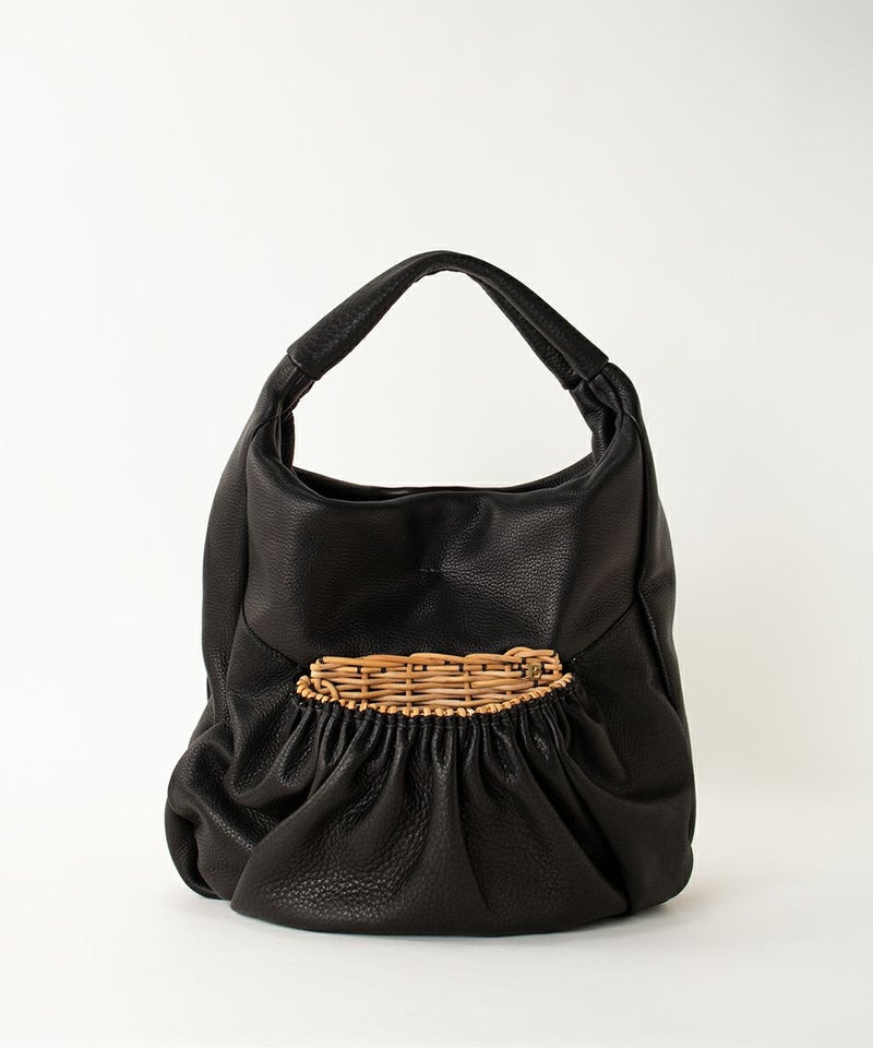 カゴ口にベジシュリンクを編みこみ、ポケットを覆ってある大きめのワンショルダーバッグ。 ポケットの内側には綿入りナイロン素材の裏地が使われています。 立体的なポッケはスマートフォンを横にいれるとちょうどおさまるサイズ感になります。 【素材】 なめし工程からすべて日本でつくられているシュリンクになります。 渋なめしの革で柔らかく、むっちりとした仕上げりになるのはエバゴスの技術ならでは。 渋なめしの特徴はそのままにタイコで色染めするだけでその後調整していないので色落ちも少なく、ムラがある風合いなので色の変化を育てていくことを楽しめる革になります。 ポケットの内側に使われている籐(とう)は、「紅籐(べにとう)」と呼ばれ、24時間水につけて柔らかくするほど硬く丈夫な素材です。 使うほどに色と艶が変化していきます。 籐は自然の素材なので黒いところ赤いところと様々な表情がございます。一つ一つ職人による手仕事で作られているため個体差がございます。 【収納】 二つ折り財布:〇 ポーチ:〇 スマ-トフォン:〇