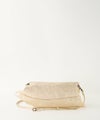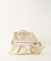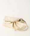 シルエットもタックもアシンメトリーに作られており、クラッチ、ハンド、ショルダーの3wayになります。 ハンドで後ろ側を表にし持っていただくのもおすすめ。 いろいろな合わせ方ができる表情豊かなバッグです。 【素材】 ソフトメタリックはとても柔らかくしっかり感がある厚みのゴート・メタリックです。 表面にみられる”シボ”は製作過程のワッシャー加工により、でています。 【収納】 三つ折り財布:〇 ポーチ:〇 スマ-トフォン:〇 500㎜ペットボトル:〇(横向き)