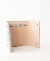 ワニ型押しされた牛革にティラノサウルスが千鳥格子に変化したプリントです。 エバゴスオリジナルの「ティラノ・トゥース」プリント。 【素材】 ソフトに鞣した牛革にワニ型押しが施してあります。 表面がしっかり型押しされているのに柔らかな質感。 【ご購入に関して】 エバゴスの販売実店舗はマドリガル 北店、南堀江店、ムジークの3店舗ございます。 ご希望の商品の在庫の有無はご来店希望の店舗メールにお気軽にお問い合わせくださいませ。