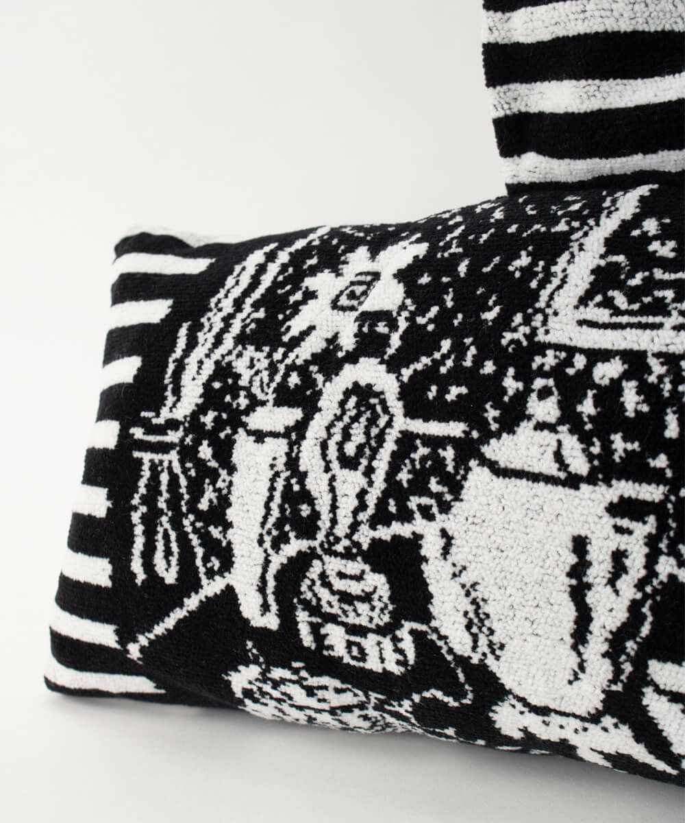 今期のシェニールは”HIRAMEITA &” エジソンが発明した電球をはじめ、バーコレーター、ミルクフォーマーなどを囲んで部屋に明かりがある事の喜びを感じながら夜をすごし、心がおどる"ルンルン"している様子が柄に表現されています。 腰あてとして椅子において使えるクッションです。 ひとつひとつ、手仕事で制作されているので個体差がございます。 【素材】 シェニールは再織りと呼ばれています。 一度織ったものをカットして糸を作り、織りなおし、時間をかけて作り出した織物です。 【ご購入に関して】 エバゴスの販売実店舗はマドリガル 北店、南堀江店、ムジークの3店舗ございます。 ご希望の商品の在庫の有無はご来店希望の店舗メールにお気軽にお問い合わせくださいませ。