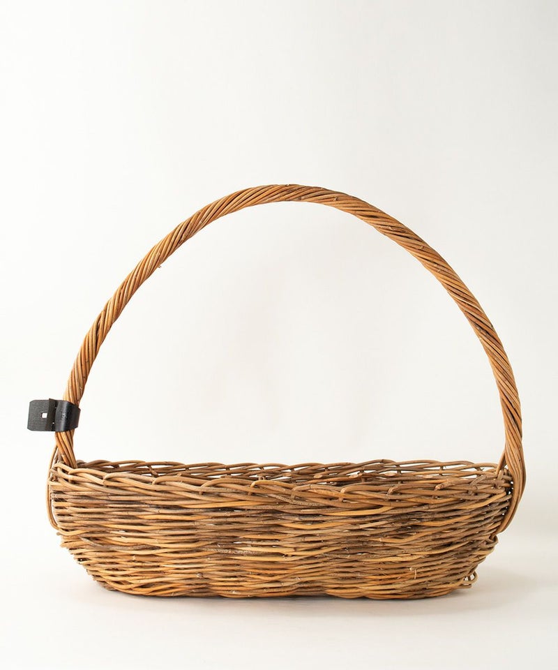 編み直しのかご 紅籐を使ってエバゴスでは20年になります。 一度編んだ紅籐のカゴをほどいて 「編み直しが出来たらいいな」と常々思っていたことをかたちに… 毛糸のようにスチームなどで直せばいいですが、紅籐は、そうはいきません。 どうしても跡が残り美しい編み目にならないからです。 新型テストで作るカゴの数々。 編みの時、色合わせ、太さ合わせをすると、どうしても使えなくなる籐。 など、など、溜まったストックが倉庫に眠ったままでいます。 船も入れない山奥から人力で街まで運び出し、水抜きして、編み工場に渡されケアして、 日本でもケアを繰り返し荒々しい紅籐がやっとバッグになっていきます。 栽培ができない紅籐。 今では、採取することがとても難しい希少価値の高い紅籐です。 廃棄はとてもできません。 美しい編み目ではなく、飛び出たり荒々しくもそれがムードになるものを作れば、良いんだと思いつきました。 インテリアとしてオブジェとして楽しむシリーズです。 編み方を3本縄編みにして横に編む籐を無理に真っ直ぐにしようとせず、 飛び出ていたり、ねじれていたり、太かったり、曲がっていたり・・・。 太さ、色もバラバラ・・・。 それが良いと思える大きなカゴを作りました。 ダクトは、太めのカゴ3~4個分を解いて作ります。 それだけ時間がかかりますが、出来上がったものは、 再生なのに生まれたまま(As born)の紅籐のような存在感と 少し笑える愛らしさがあります。 ぜひ、お部屋に、マスコットとして。 【素材】 カゴ本体に使われている籐(とう)は、「紅籐(べにとう)」と呼ばれ、24時間水につけて柔らかくするほど硬く丈夫な素材です。 使うほどに色と艶が変化していきます。 籐は自然の素材なので黒いところ赤いところと様々な表情がございます。一つ一つ職人による手仕事で作られているため個体差がございます。 【ご購入に関して】 エバゴスの販売実店舗はマドリガル 北店、南堀江店、ムジークの3店舗ございます。 ご希望の商品の在庫の有無はご来店希望の店舗メールにお気軽にお問い合わせくださいませ。
