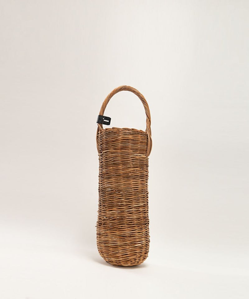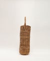 編み直しのかご 紅籐を使ってエバゴスでは20年になります。 一度編んだ紅籐のカゴをほどいて 「編み直しが出来たらいいな」と常々思っていたことをかたちに… 毛糸のようにスチームなどで直せばいいですが、紅籐は、そうはいきません。 どうしても跡が残り美しい編み目にならないからです。 新型テストで作るカゴの数々。 編みの時、色合わせ、太さ合わせをすると、どうしても使えなくなる籐。 など、など、溜まったストックが倉庫に眠ったままでいます。 船も入れない山奥から人力で街まで運び出し、水抜きして、編み工場に渡されケアして、 日本でもケアを繰り返し荒々しい紅籐がやっとバッグになっていきます。 栽培ができない紅籐。 今では、採取することがとても難しい希少価値の高い紅籐です。 廃棄はとてもできません。 美しい編み目ではなく、飛び出たり荒々しくもそれがムードになるものを作れば、良いんだと思いつきました。 インテリアとしてオブジェとして楽しむシリーズです。 編み方を3本縄編みにして横に編む籐を無理に真っ直ぐにしようとせず、 飛び出ていたり、ねじれていたり、太かったり、曲がっていたり・・・。 太さ、色もバラバラ・・・。 それが良いと思える大きなカゴを作りました。 ダクトは、太めのカゴ3~4個分を解いて作ります。 それだけ時間がかかりますが、出来上がったものは、 再生なのに生まれたまま(As born)の紅籐のような存在感と 少し笑える愛らしさがあります。 ぜひ、お部屋に、マスコットとして。 【素材】 カゴ本体に使われている籐(とう)は、「紅籐(べにとう)」と呼ばれ、24時間水につけて柔らかくするほど硬く丈夫な素材です。 使うほどに色と艶が変化していきます。 籐は自然の素材なので黒いところ赤いところと様々な表情がございます。一つ一つ職人による手仕事で作られているため個体差がございます。 【ご購入に関して】 エバゴスの販売実店舗はマドリガル 北店、南堀江店、ムジークの3店舗ございます。 ご希望の商品の在庫の有無はご来店希望の店舗メールにお気軽にお問い合わせくださいませ。