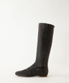 スキニーブーツが復活しました。 すっきりとした細いラインが足をきれいにみせてくれるブーツです。 プラスチックバックルとテープがポイント。 履いていただくときは先に口をとめてから履いていただくと履きやすいです。 裏地はブタ革なので、はいていただいている間に馴染んでより柔らかくなります。 サイズは一番ゆったりしているところで23㎝は31㎝、24㎝で32㎝となっています。 【素材】 牛ソフトは渋なめしの限界の薄さまで薄くした革で柔らかくハリがあるのが特徴です。 独特の光沢があり、使用していると艶がでてきます。 本来の質感を大切にしているので使用していると細かい傷がつきますが、ずっと愛用していただくと傷も馴染んでくる革です。 【ご購入に関して】 エバゴスの販売実店舗はマドリガル 北店、南堀江店、ムジークの3店舗ございます。 ご希望の商品の在庫の有無はご来店希望の店舗メールにお気軽にお問い合わせくださいませ。 ※ステッチの色、パーツなどの細部につきましてはシーズンにより異なる場合もございます。 ※在庫は日々変動いたします。 ご希望のサイズをお問い合わせください。