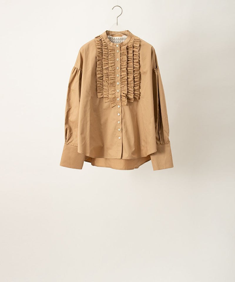 高密度サテン フリルブラウス BEIGE