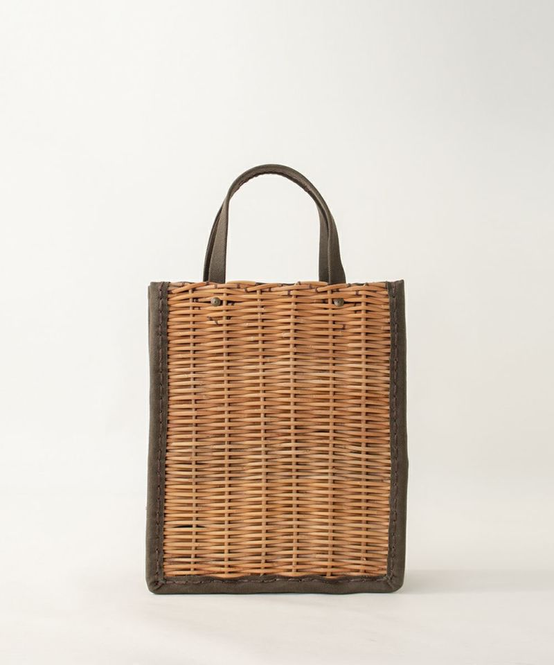キャンバス・かご袋・ハンド(A4カゴ袋)防水キャンバス×紅籐 KAHKI