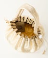 ころんと柔らかい丸い巾着です。 持っている時のコロコロした姿がとても愛嬌があります。 【素材】 ソフトメタリックはとても柔らかくしっかり感がある厚みのゴート・メタリックです。 表面にみられる”シボ”は製作過程のワッシャー加工により、でています。 【収納】 三つ折り財布:〇 ポーチ:〇 スマ-トフォン:〇