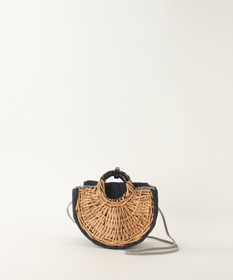丸みのあるシルエットが可愛い「半月バッグ」 オールシーズン使える人気の形がミニサイズになりました。 コンパクトでありながら、マチがあるので見た目以上の収納力。 ちょっとしたお出掛けに大活躍。 デニム素材部分は折りたたむことも出来るので、旅行先につれていくのもおすすめです。 ショルダー部分の紐はお好みの長さに調整していただけます。 8オンスのデニムの為、色落ちにはお気をつけください。 中の当たる部分は浦使いになっております。、 【素材】 カゴ本体に使われている籐(とう)は、「紅籐(べにとう)」と呼ばれ、24時間水につけて柔らかくするほど硬く丈夫な素材です。 使うほどに色と艶が変化していきます。 籐は自然の素材なので黒いところ赤いところと様々な表情がございます。一つ一つ職人による手仕事で作られているため個体差がございます。 【収納】 三つ折り財布:〇 ポーチ:〇 スマ-トフォン:〇 【ご購入に関して】 エバゴスの販売実店舗はマドリガル 北店、南堀江店、ムジークの3店舗ございます。 ご希望の商品の在庫の有無はご来店希望の店舗メールにお気軽にお問い合わせくださいませ。