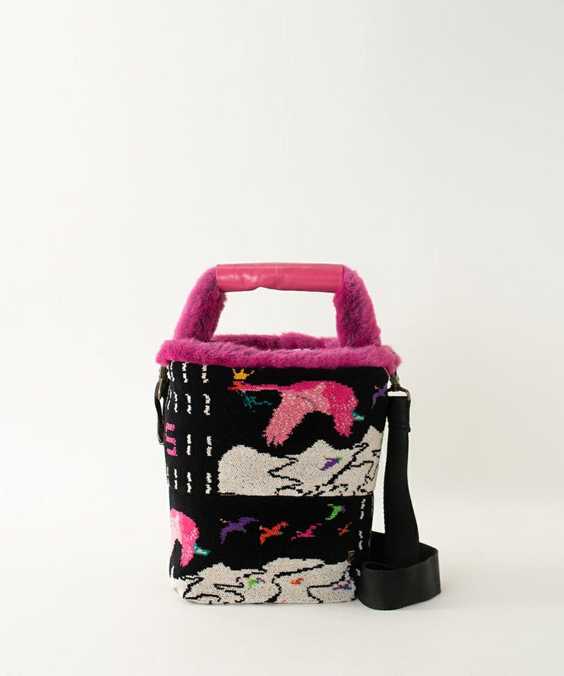今期のテーマは「BIRD JOURNEY] スワンの飛行中、山の上を飛ぶ姿を柄に描いてあり、 CHOCOに描かれているのはブルースカイの中。 寝ながらでも飛ぶことができるスワンのイメージを膨らませたら夢の中ではピンク色になりました。 飛来するスワンをイメージしたシェニールのやわらかいバケツです。 持ち手はエコファーでレザー巻きになります。 ショルダーは取り外し可能です。 【素材】 シェニールは再織りと呼ばれています。 一度織ったものをカットして糸を作り、織りなおし、時間をかけて作り出した織物です。。 カゴ本体に使われている籐(とう)は、「紅籐(べにとう)」と呼ばれ、24時間水につけて柔らかくするほど硬く丈夫な素材です。 使うほどに色と艶が変化していきます。 籐は自然の素材なので黒いところ赤いところと様々な表情がございます。 一つ一つ職人による手仕事で作られているため個体差がございます。 【収納】 長財布:〇 ポーチ:〇 スマ-トフォン:〇