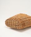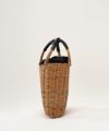 マチが狭いので肘までいれても使いやすいバッグです。 裏地はチュールにナイロン綿入りのポケットがついていて、A4の書類も入ります。 (着用画像モデル身長:164cm) 【素材】 厚みがありながらもフニャフニャした質感のシュリンク・エンボスレザーです。 LWGの最高ランゴールド認証されている環境保全、品質に配所されているところで作られているレザーになります。 発色が良く、傷や色落ちを気にせず使いやすいのが特徴で、他では感じることのできない独特の素材感です。 使われている籐(とう)は、「紅籐(べにとう)」と呼ばれ、24時間水につけて柔らかくするほど硬く丈夫な素材です。 使うほどに色と艶が変化していきます。 籐は自然の素材なので黒いところ赤いところと様々な表情がございます。一つ一つ職人による手仕事で作られているため個体差がございます。 (シーズンにより若干のデザインのチェンジ、バッグ内側の使用素材および配色の変更があることがございます。) *バッグ表面の籐の出方は個体差がございます。 *持ち手は握りやすいように歪曲しております。 【収納】 長財布:〇 スマートフォン:〇 500mlペットボトル:〇 ポーチ:〇