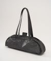 底にはナイロンが当ててあり、他はあえて裏地をつけていないので薄い紙袋をもっているような質感でこの革だからこそのシルエット。