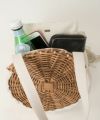 ”手長タンバリン”と名前がついたこのバッグ、リズムを奏でそうな籐の編み地。 定期や携帯が取り出しやすそうな、気の利いた外ポケットがついています。リネンの被せは取り外し可能です。