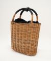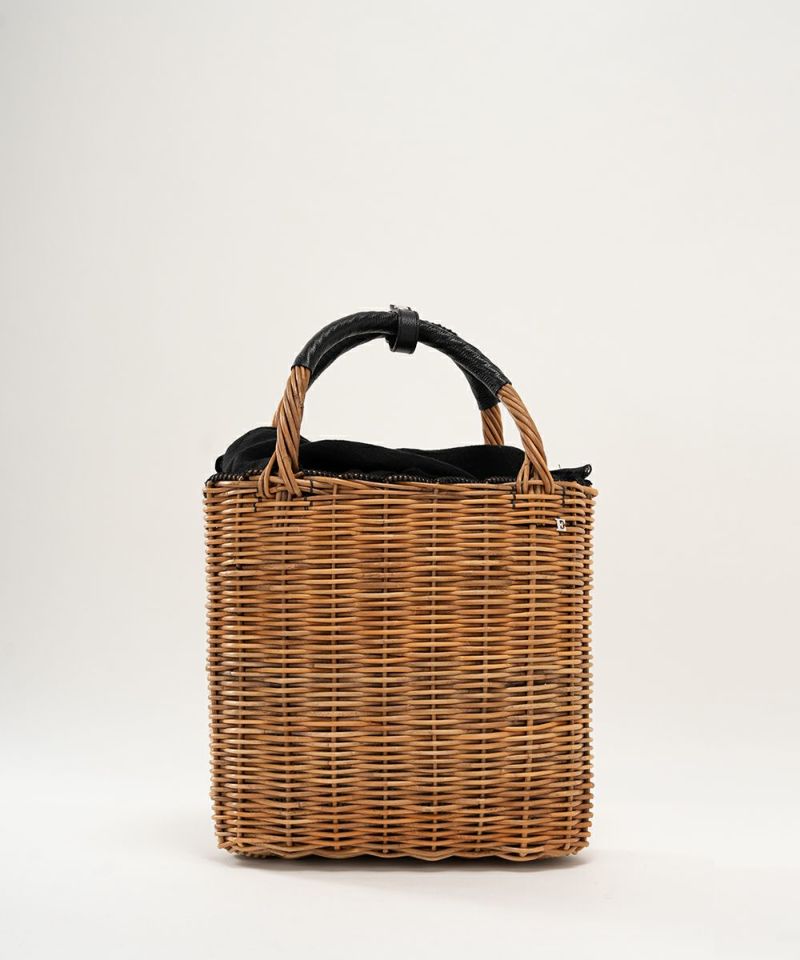 マチが狭いので肘までいれても使いやすいバッグです。 裏地はチュールにナイロン綿入りのポケットがついていて、A4の書類も入ります。 (着用画像モデル身長:164cm) 【素材】 厚みがありながらもフニャフニャした質感のシュリンク・エンボスレザーです。 LWGの最高ランゴールド認証されている環境保全、品質に配所されているところで作られているレザーになります。 発色が良く、傷や色落ちを気にせず使いやすいのが特徴で、他では感じることのできない独特の素材感です。 使われている籐(とう)は、「紅籐(べにとう)」と呼ばれ、24時間水につけて柔らかくするほど硬く丈夫な素材です。 使うほどに色と艶が変化していきます。 籐は自然の素材なので黒いところ赤いところと様々な表情がございます。一つ一つ職人による手仕事で作られているため個体差がございます。 (シーズンにより若干のデザインのチェンジ、バッグ内側の使用素材および配色の変更があることがございます。) *バッグ表面の籐の出方は個体差がございます。 *持ち手は握りやすいように歪曲しております。 【収納】 長財布:〇 スマートフォン:〇 500mlペットボトル:〇 ポーチ:〇