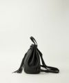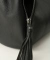 レザーだけれど、カバン周りのステッチと大きなタッセル、台形フォルムが柔らかな印象です。