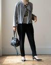 久しぶりにグレーのジャケットを購入しました。年齢柄、顔色が悪くならない様にベージュ系のトップスを選ぶことが多く、グレーは避けてきました。 そんな中、少し前からエッグジャケットのデザインがとても気になっていたのですが、ブラックとパープルネイビーの2択…どちらも顔色がくすんで見えるかも、と購入出来ないでいました。そこへ新作グレーの登場!避けていたグレーではあるけれど、写真で見るとそんなに濃くなさそうな色合い…それでもオンラインで購入してしまって良いのか、相当悩みつつ思い切ってポチッと 笑 いつもながらリボンの掛かった素敵な包装に心踊りながらそぉっと開封して、優しいグレーの色合いに感動、顔映りも決してくすんで見えなかったです 笑 これから秋が深まり、本格的なコートの時期が来るまで、このジャケットを着倒したいと思ってます。 思いがけず手持ちのモスグリーンのセーターに似合って満足です。
