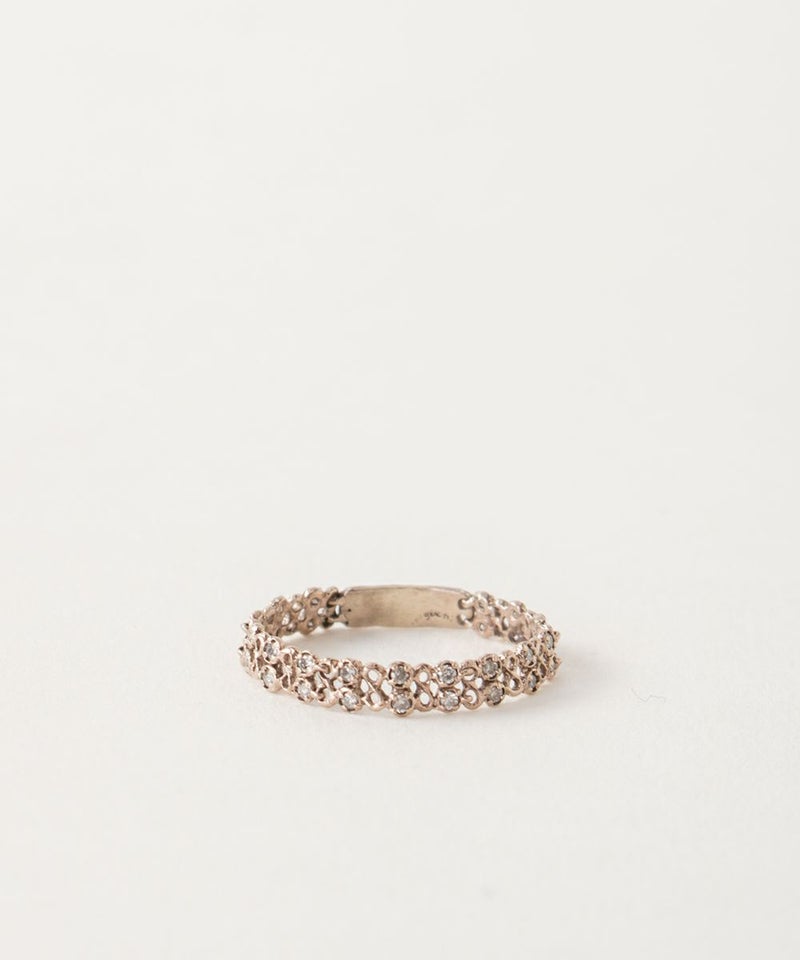 noguchiさんのアクセサリーはさりげなくてとても素敵だと以前購入したネックレスで感じていました。時々オンラインストアを拝見していますが、この度新作のリングに一目惚れ! そして、繊細な雰囲気を持った美しいレースのリングと謳われている通りのお品が昨日届きました。 早速今日から身につけて、いつもより足取りも軽く仕事場へ♪ 今年50代最後の歳を迎えます。 仕事もそろそろしんどいな、でもまだ働かないと!と感じていた私へのエール! 関節も太くなり、指輪をはめるのも躊躇していたのに、さりげないこの素敵なリングは私の指にも似合ってくれました。 1点気になった事が…事前に連絡を頂いていましたが、このリングは動きのある固定の輪では無いです。左中指にはめる予定だったのですが、第二関節でギリギリのサイズなので無理するのが怖くて右手薬指に変更。一つ上のサイズでも良かったかな、と感じてます。ただ、リング自体の雰囲気が本当に素敵なので、やはりおすすめ度は満点です! この度は良いご縁をありがとうございました。