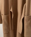 ドロップした肩と幅広の身幅で、ゆったりシルエットの「スモークコート」は、まるでガウンのようなリラックスムード。