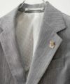 襟元のワンポイントは、エンブレムのピンバッチ。