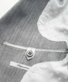襟元のワンポイントには、エンブレムのピンバッチを。