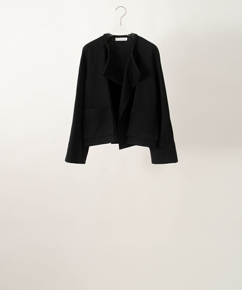 「エッグジャケット」はボタンがなく、襟がはらりと流れるデザイン。