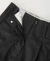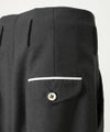 軽くしなやかな質感を持ちながら、ウール地にある綺麗な”落ち感”や上品な光沢がある点は、ワンタックがあり腰回りのゆとり感から裾に向かって、動きとともに出る陰影をより美しく魅せる素材となっています。